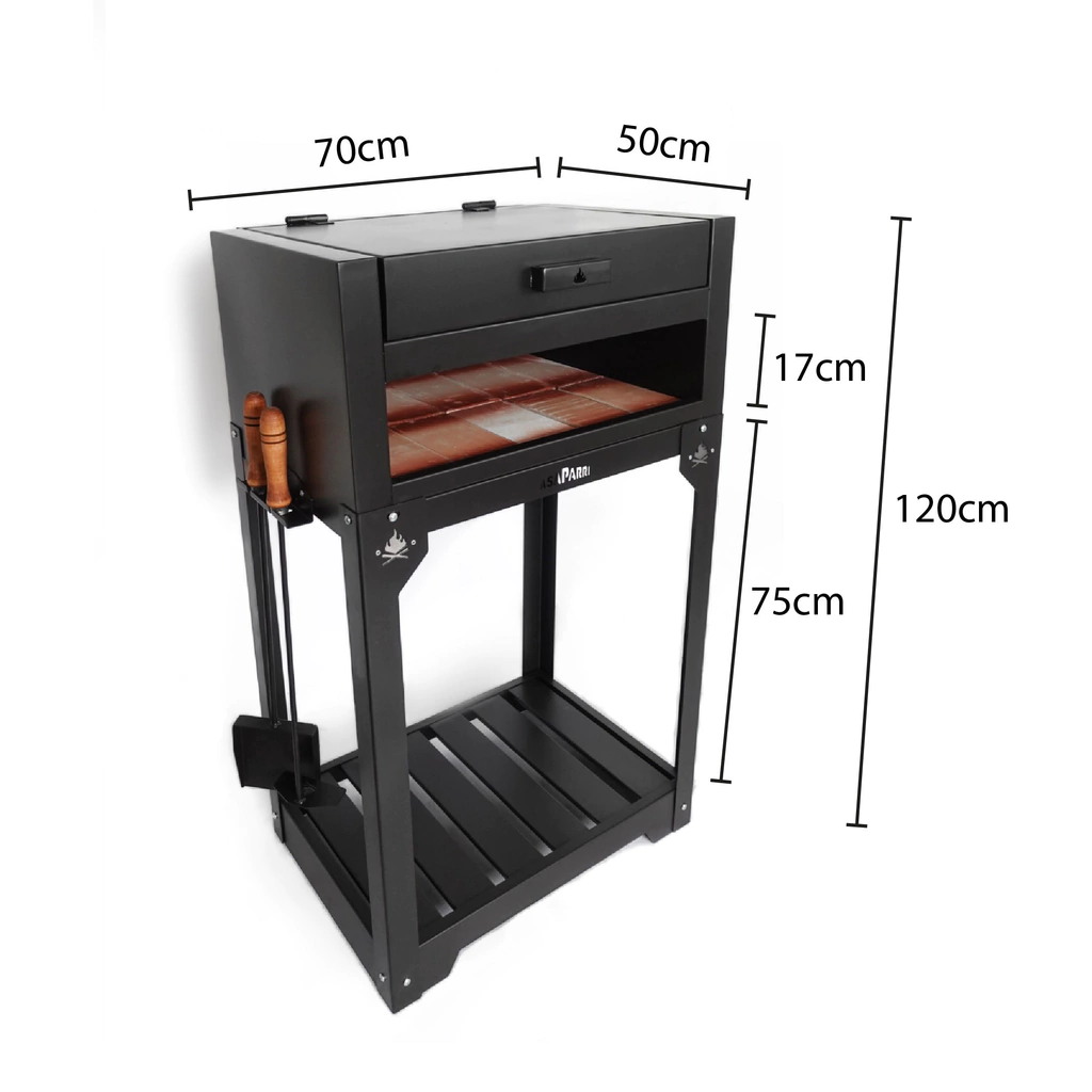 Material: Chapa negra de 3.2mm, con un tratamiento de pintura profesional resistente a la intemperie y alta temperatura, 800 grados.
