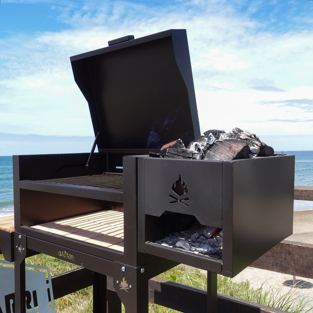 Únicamente el enrejado de la parrilla es de hierro crudo, la comida no puede estar en contacto directo con la pintura.