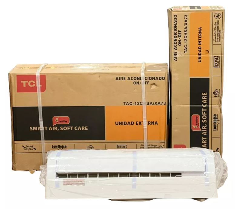 Dimensiones de la unidad externa: 754 mm de ancho x 552 mm de alto x 300 mm de profundidad y peso 27 kg.