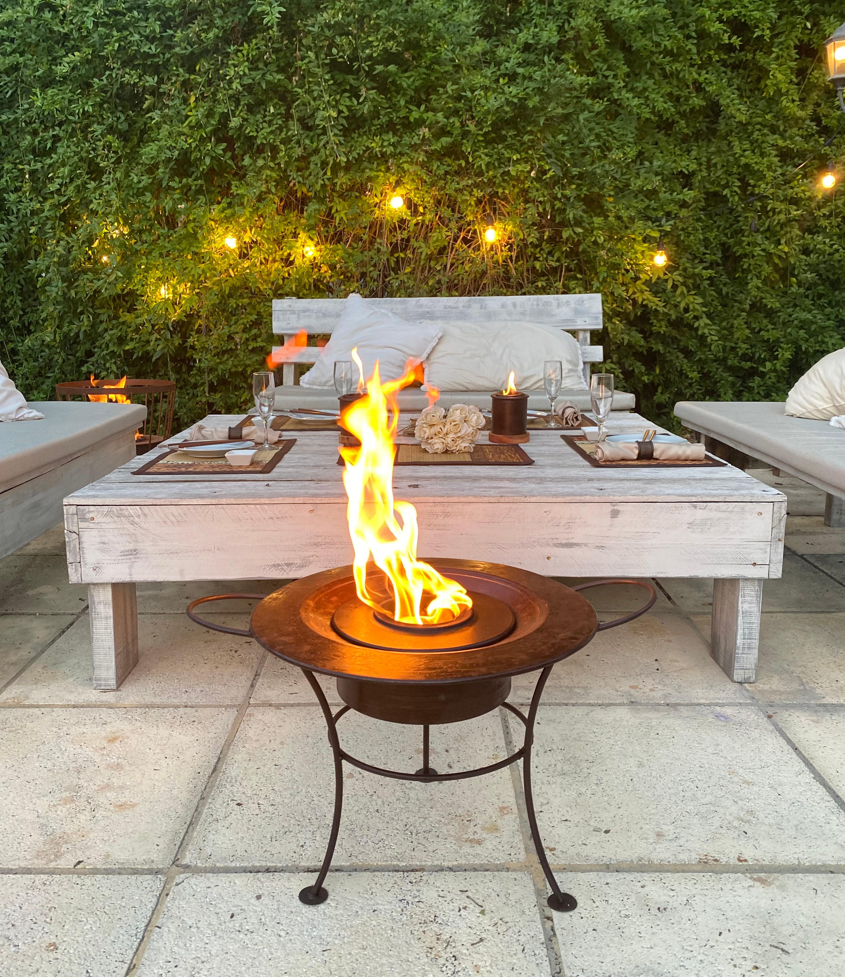 Incluye estructura, quemador y tapa apagadora. El quemador es removible y mientras no esté en uso debe guardarse bajo techo, en cambio la estructura puede quedar a la intemperie. Se puede utilizar en cualquier superficie. .