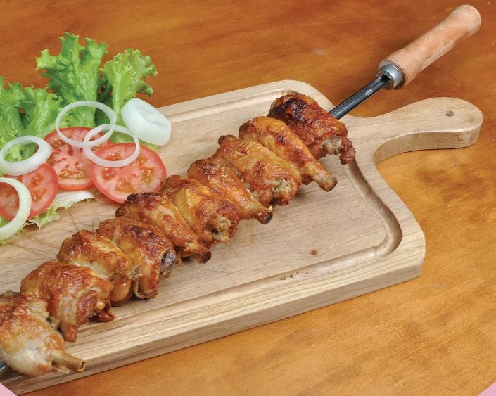 Fabricado con una hoja de acero y acabado cromado. Además, el mango de madera garantiza su seguridad minimizando el riesgo de quemaduras. super duradero y resistente. Perfecto para para asar costillas, bistec, muslos de pollo y más.