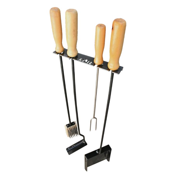 Kit Parrillero con Soporte 4 piezas, pala , atizador , tenedor y Cepillo