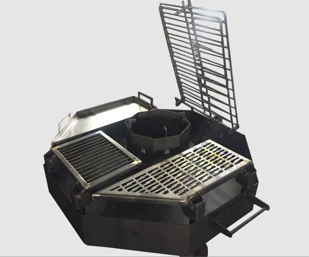 -Para acomodar la leña y dejar caer las brasas, con hierros redondos y reforzado en su totalidad.
