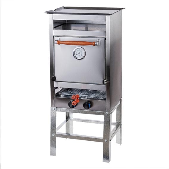 Exterior completamente de acero inoxidable. Interior completamente enlozado. Piso de ladrillos refractarios.