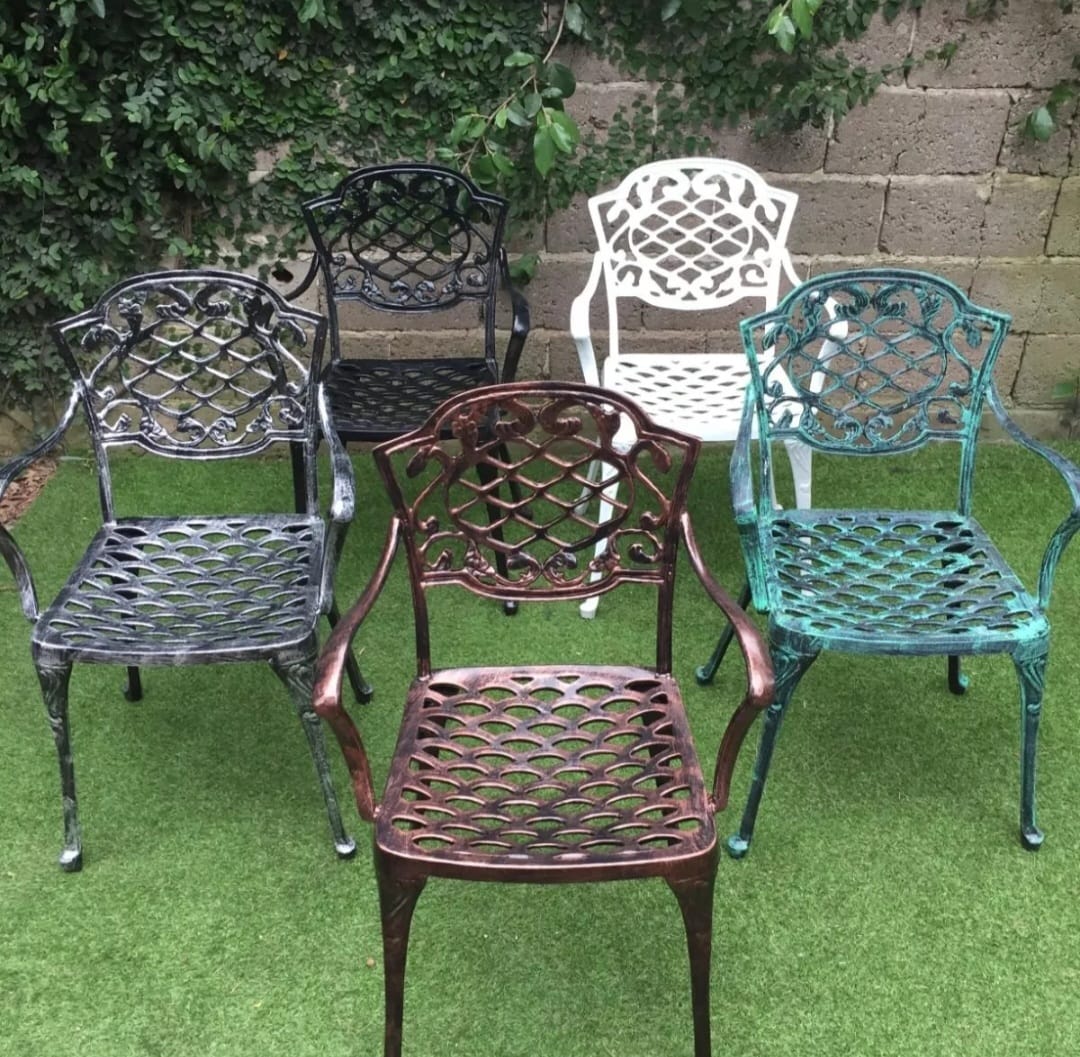 Colores: blanco, negro, patinas: en verde, en aluminio, óxido y bronce viejo.