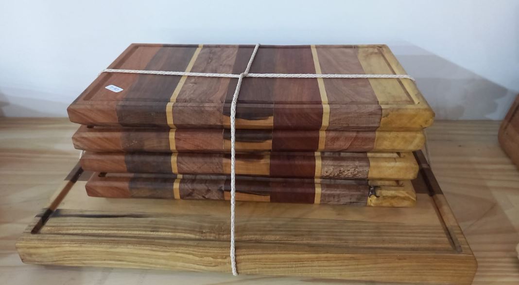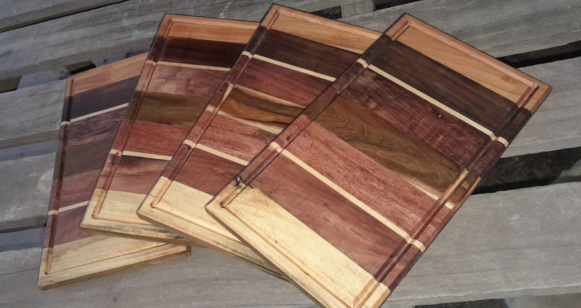 La tabla grande principal viene con 4 tacos de gomas en la parte de apoyo, para evitar que se mueva al cortar o evitar ralladuras en la mesa de apoyo.