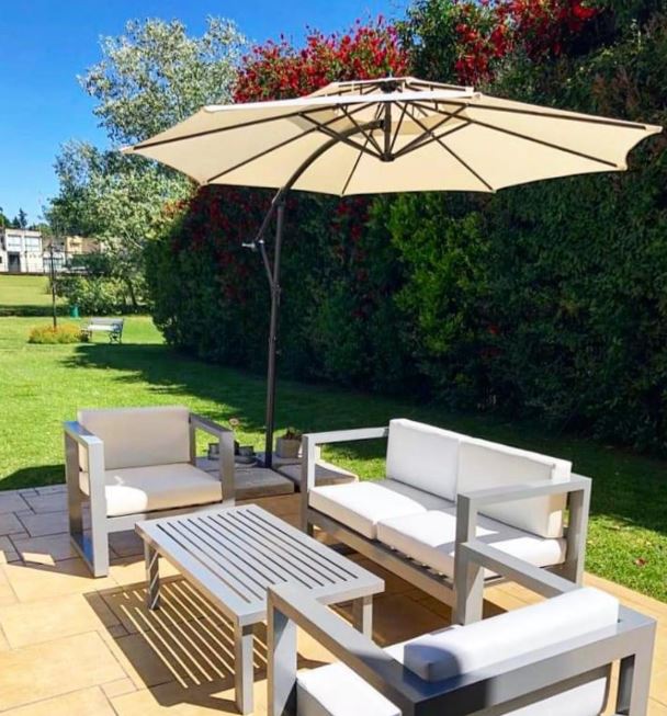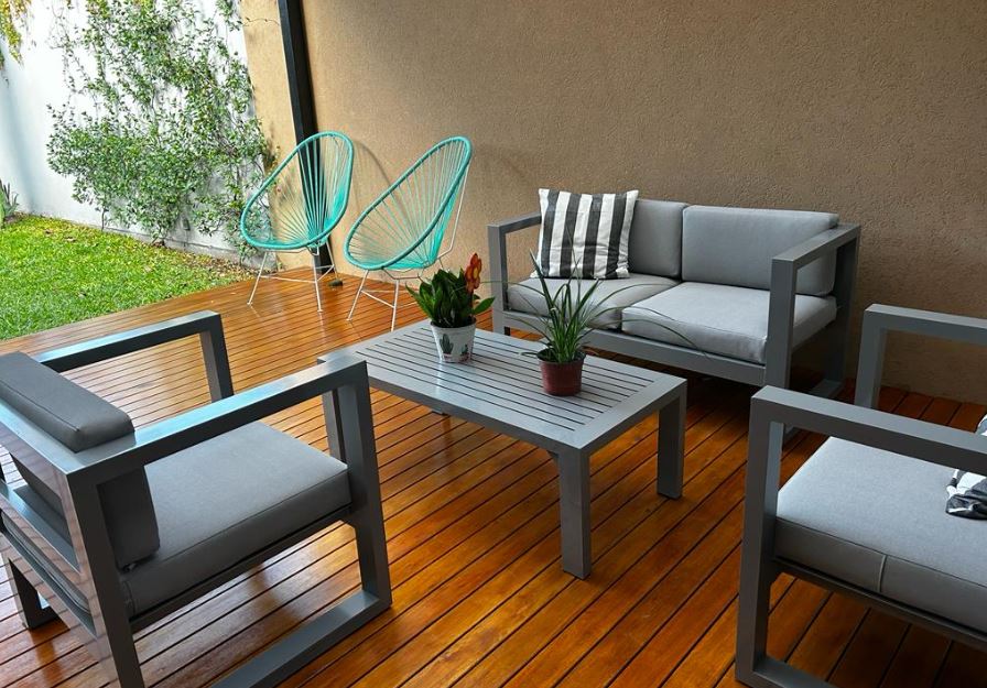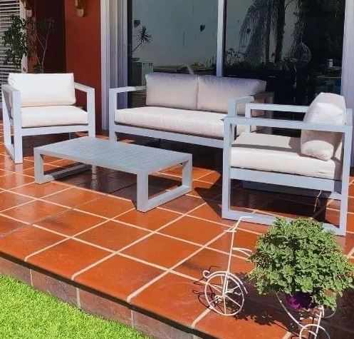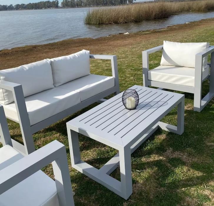 Juego de living para exterior modelo en caño de aluminio pintado al horno con la mejor calidad y pintura del mercado.