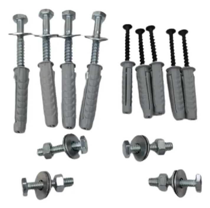 - KIT DE TORNILLO: (4 TIRAFONDO CON ARANDELA Y TARUGO DE 10 mm, 6 TORNILLOS CON ARANDELAS Y TARUGOS DE 6 mm, 4 TORNILLOS CON ARANDELAS Y TUERCA PARA LAS MÉNSULA)