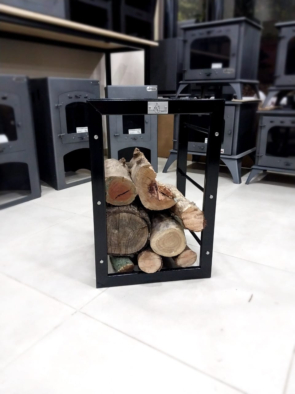 Estantes para separar distintas medidas de troncos de madera.