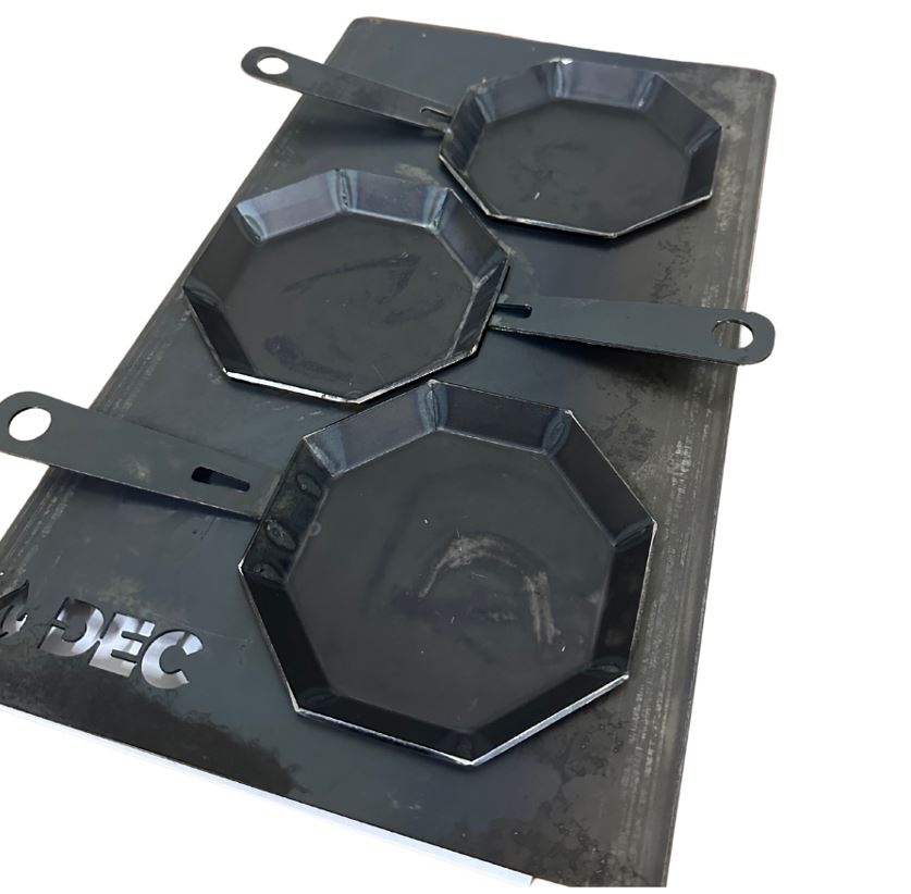- Incluye 3 provoleteras octogonal de chapa de hierro de 2 mm de espesor con mango de hierro.