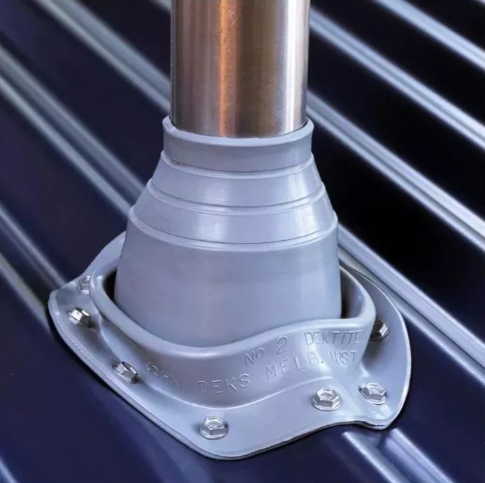 Sello hermético y elástico para salidas de ventilaciones y paso de cañerías en cubiertas metálicas, apto para intemperie y condiciones de temperaturas severas , con una base flexible y resistente que se la adapta a diferentes formas