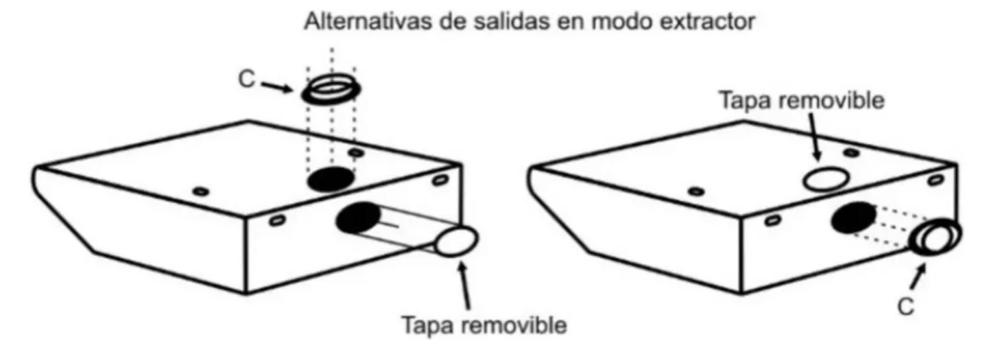 - Se puede usar como Purificador sin salida, y/o extractor con salida exterior.