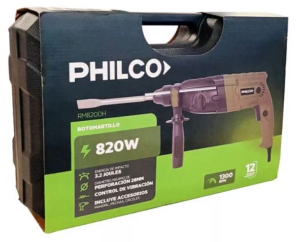 Este rotomartillo Philco RM820 es lo que necesitás para encarar trabajos pesados, seas una persona aficionada o un profesional. Su funcionamiento es muy similar al de un taladro, solo que esta herramienta es más potente y permite trabajar en materiales más firmes.