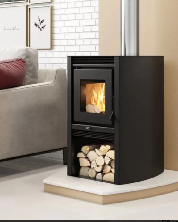 Cierre con soga. Regulador de entra de aire. Base con leñero incorporado