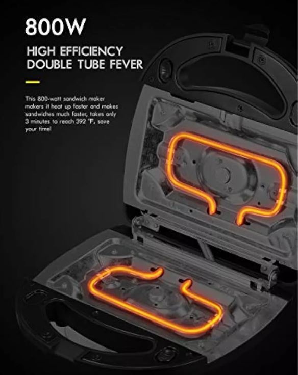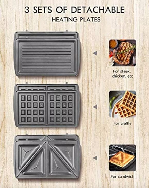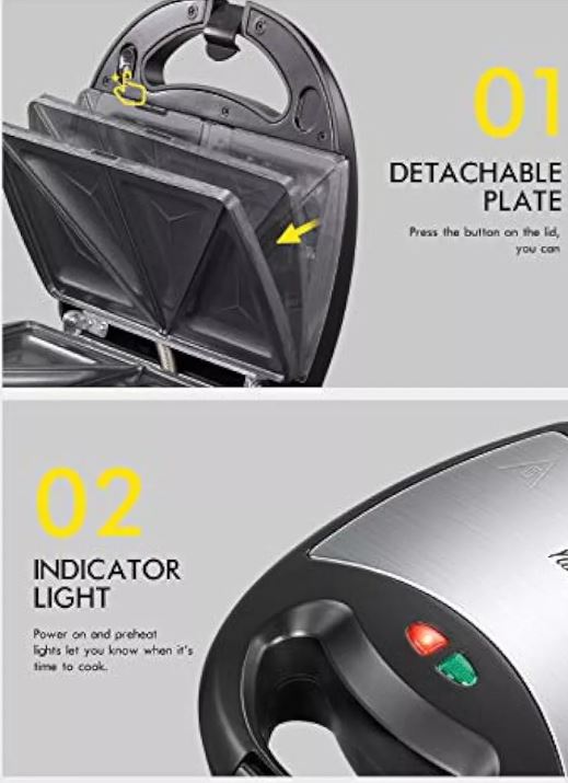 Fácil de usar: con su diseño fácil de usar y controles intuitivos, esta sandwichera hace que sea fácil crear deliciosos sándwiches y waffles. Perfecto para principiantes y chefs experimentados por igual.