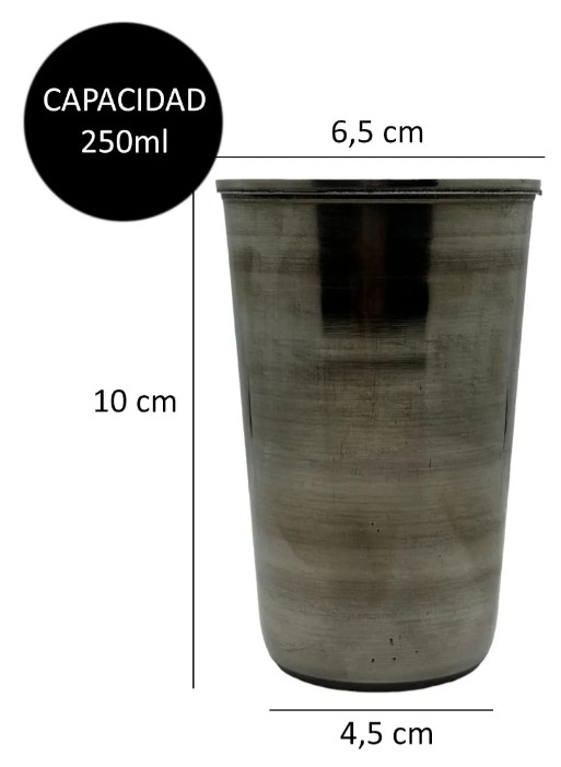 • VASO 250ml ( 10 cm alto x 6,5 cm Diámetro Boca x 4,5 cm Diámetro Base).